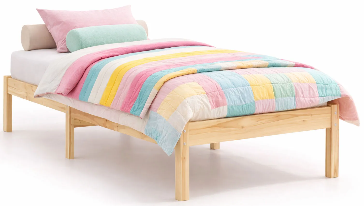 Naturalne drewniane łóżko pojedyncze 90x200 cm - Selvis 3X