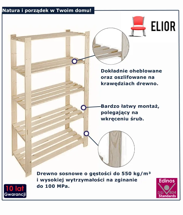 Masz już dość ciągłego bałaganu i braku miejsca na ulubione przedmioty? Pino marki Edinos Premium to prosty sposób, by w końcu zaprowadzić porządek bez rezygnacji z dobrego stylu. Ten drewniany regał nie tylko pomieści Twoje skarby, ale też doda przestrzeni przytulnego charakteru. Wyobraź sobie, jak pięknie będą na nim prezentowały się książki, rodzinne zdjęcia czy ukochane rośliny. Warto otoczyć się przedmiotami, które łączą praktyczność z naturalnym pięknem.