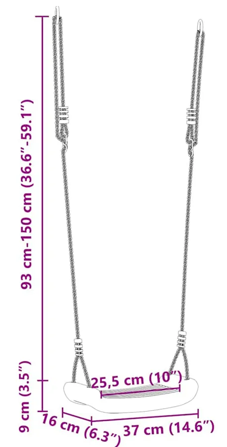 • Regulowana długość linki, umożliwiająca dostosowanie huśtawki do rosnącego dziecka.