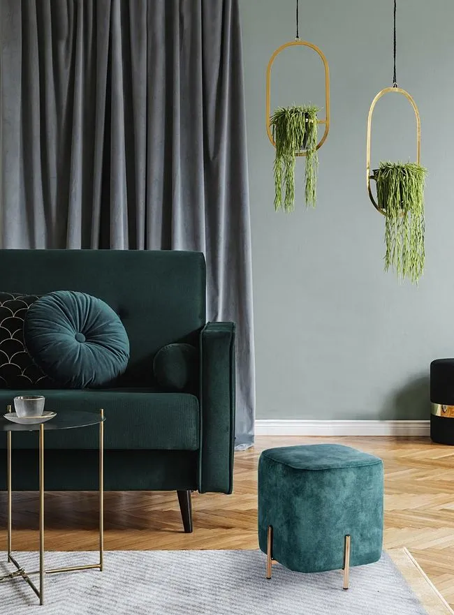 Wyjątkowa elegancja uzyskana dzięki pięknej tkaninie welwetowej oraz dzięki uroczym, złotym nóżkom