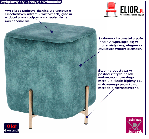- Modny kolor: niebieska, złota. Kliknij w link i sprawdź także inne piękne pufy w sklepie Edinos.pl. Stwórz swój praktyczny zestaw mebli.