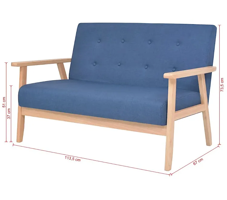 • Wymiary sofy 2-osobowej: długość: 113,5 cm, głębokość: 67 cm, wysokość: 73,5 cm.
