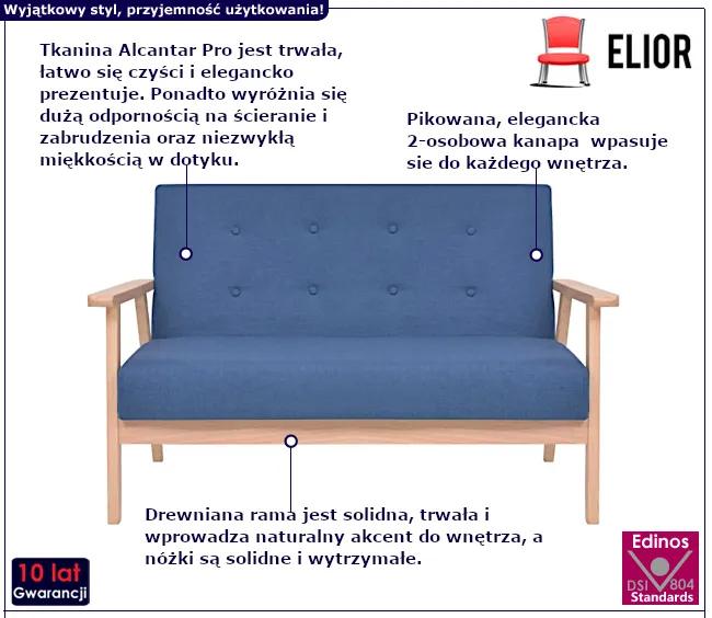 Niebieska sofa 2-osobowa - Sybis