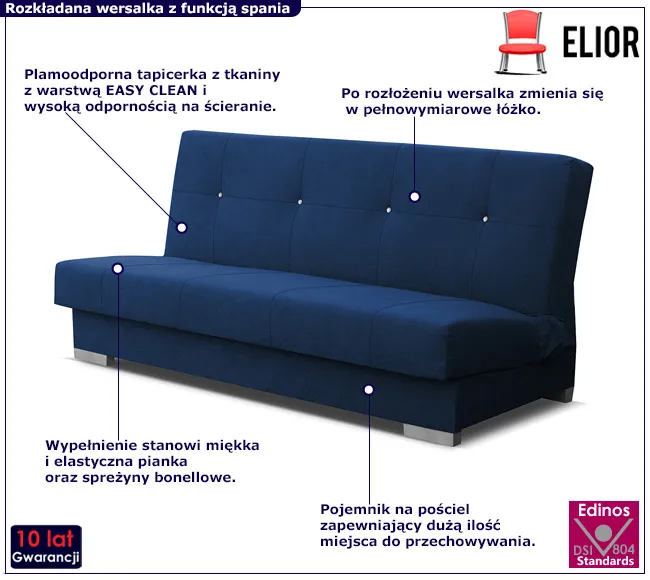 Dotyczy: Ciemnozielona tapicerowana wersalka z funkcją spania - Koflox