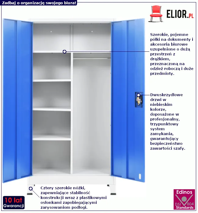 • Kolor: niebieski. Kliknij w link i sprawdź także inne szafy biurowe w sklepie Edinos.pl. Stwórz swój praktyczny zestaw mebli.