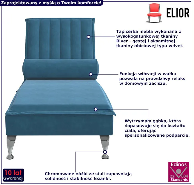 Niebieski aksamitny szezlong z poduszką masującą - Beluso 3X