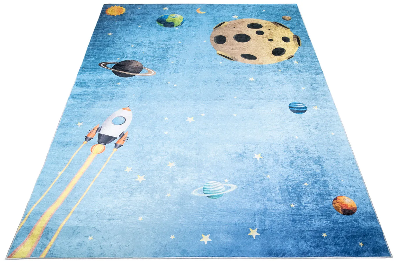 Niebieski dywan dziecięcy z planetami - Natsa 6X