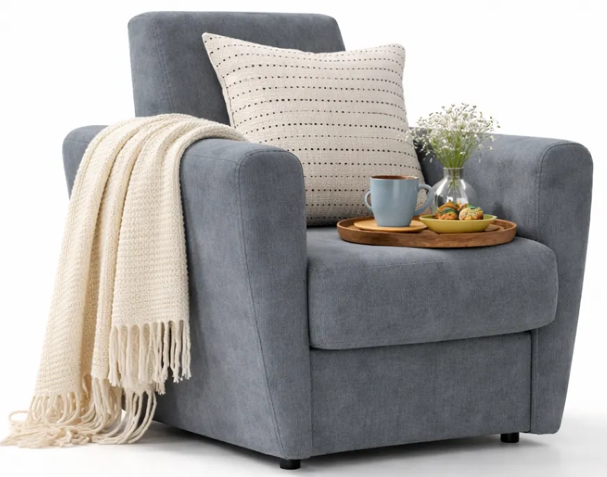 Szaroniebieski fotel wypoczynkowy do czytania Regisso