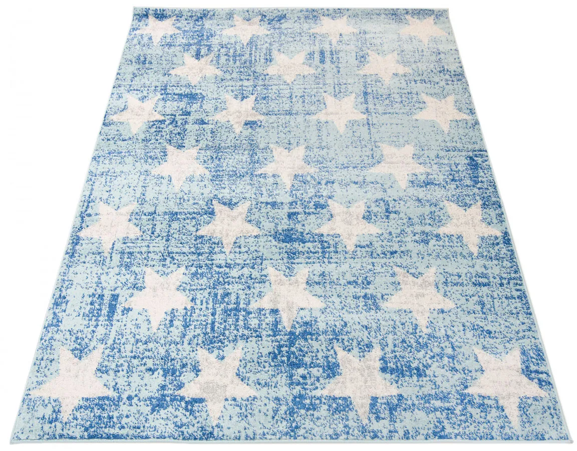 Dotyczy: Niebieski prostokątny dywan w marokański wzór - Radda 5X