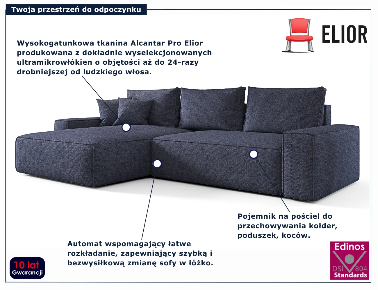 Dotyczy: Ciemnoszary narożnik rozkładany z pojemnikiem na pościel - Lusvane 3X