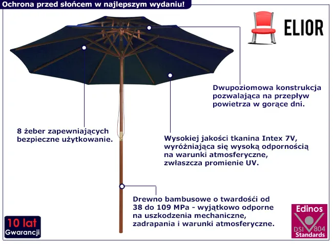 • Kolor: niebieski. Kliknij w link i sprawdź także inne parasole ogrodowe w sklepie Edinos.pl. Stwórz swóją praktyczną przestrzeń.