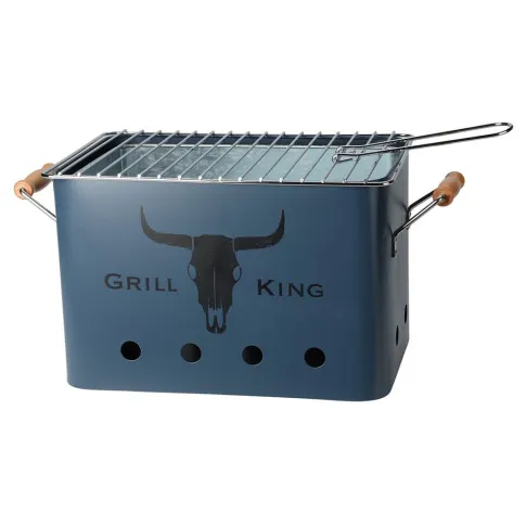 Niebieski przenośny grill z drewnianymi uchwytami - Fantazja