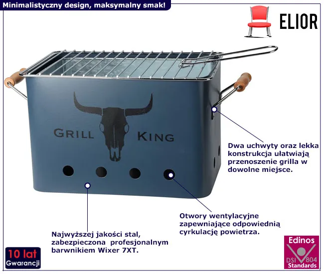 • Jest lekki i łatwy do przenoszenia, dzięki czemu możesz cieszyć się grillowaniem wszędzie tam, gdzie zapragniesz.