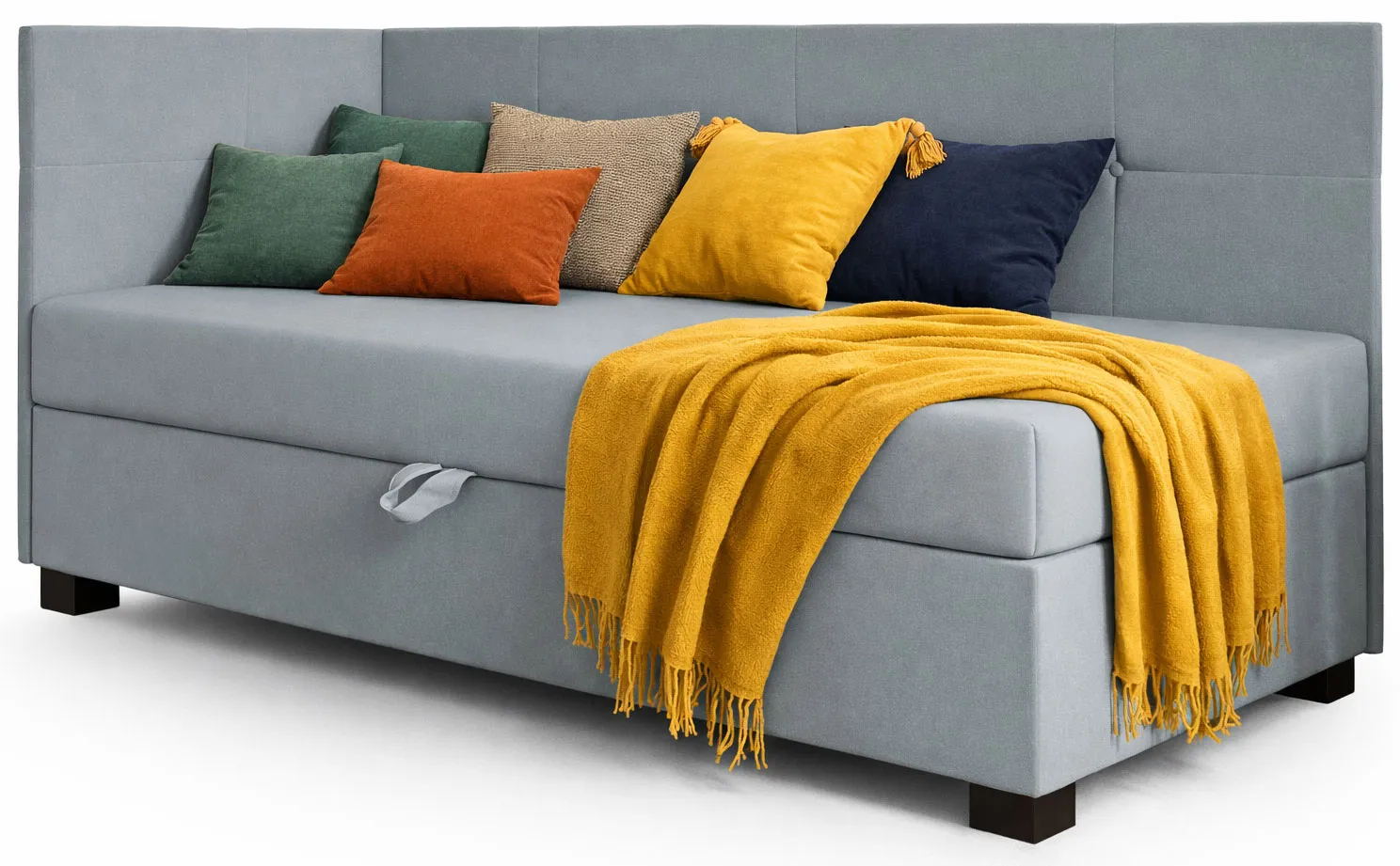 Niebieski tapczan młodzieżowy z pojemnikiem Sawwa