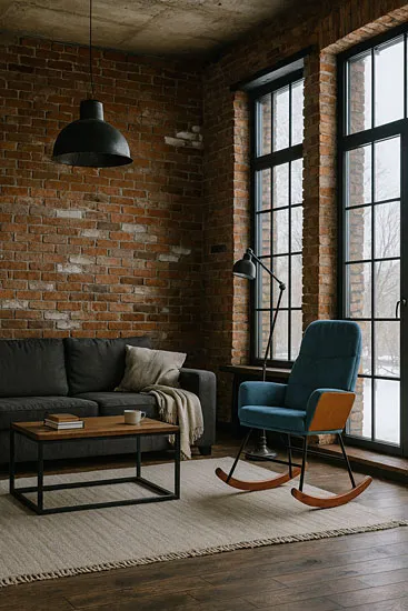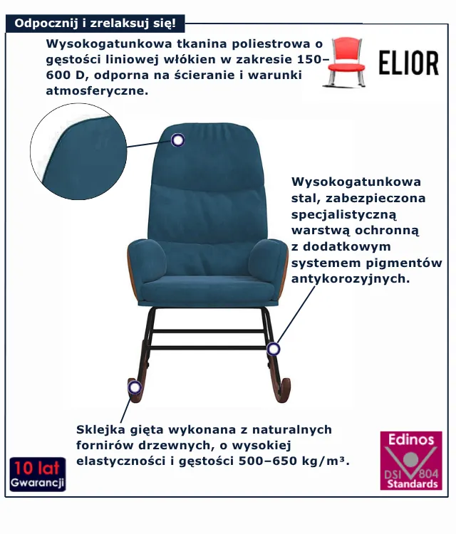 Dotyczy: Brązowy tapicerowany fotel bujany na płozach - Ulli