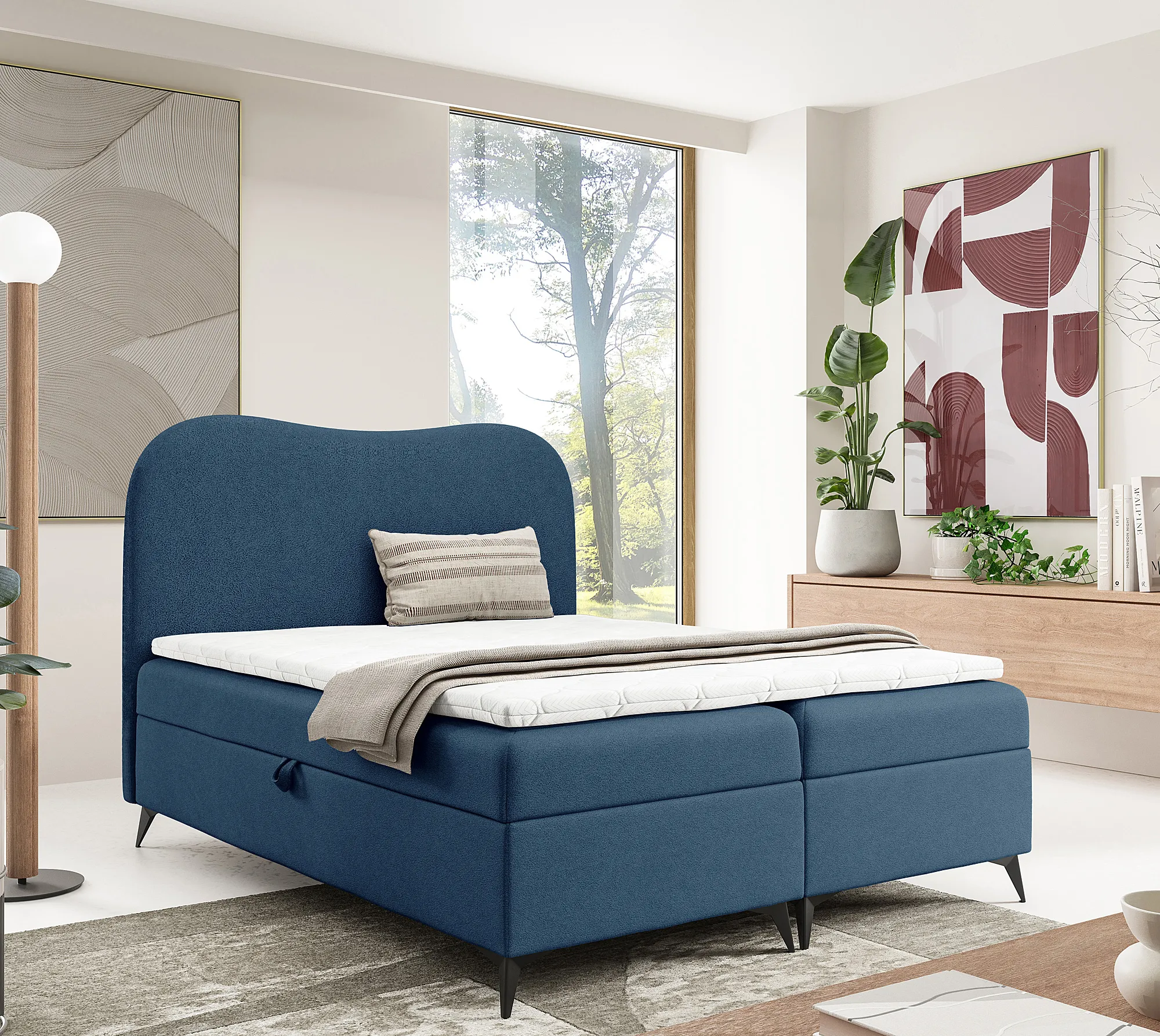 Aranżacja wnętrza z niebieskim łóżkiem Aurellia