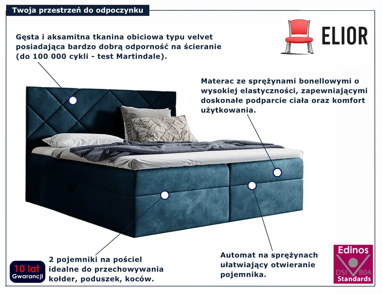 Dotyczy: Ciemnobrązowe łóżko pikowane 5 rozmiarów - Ressari