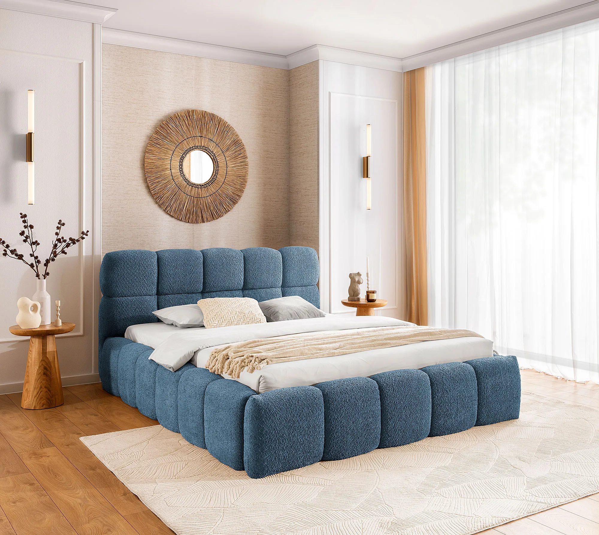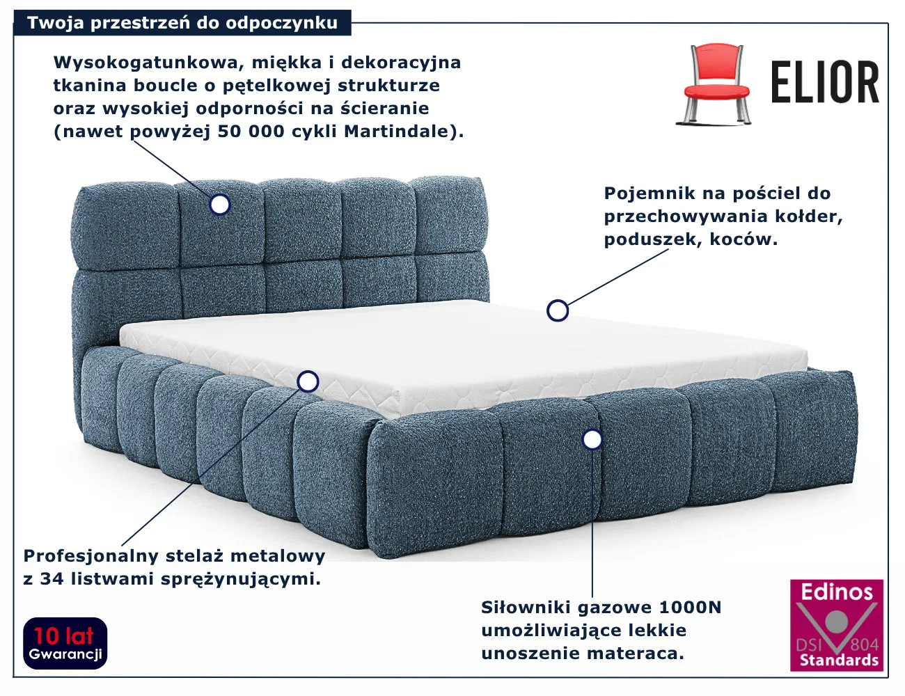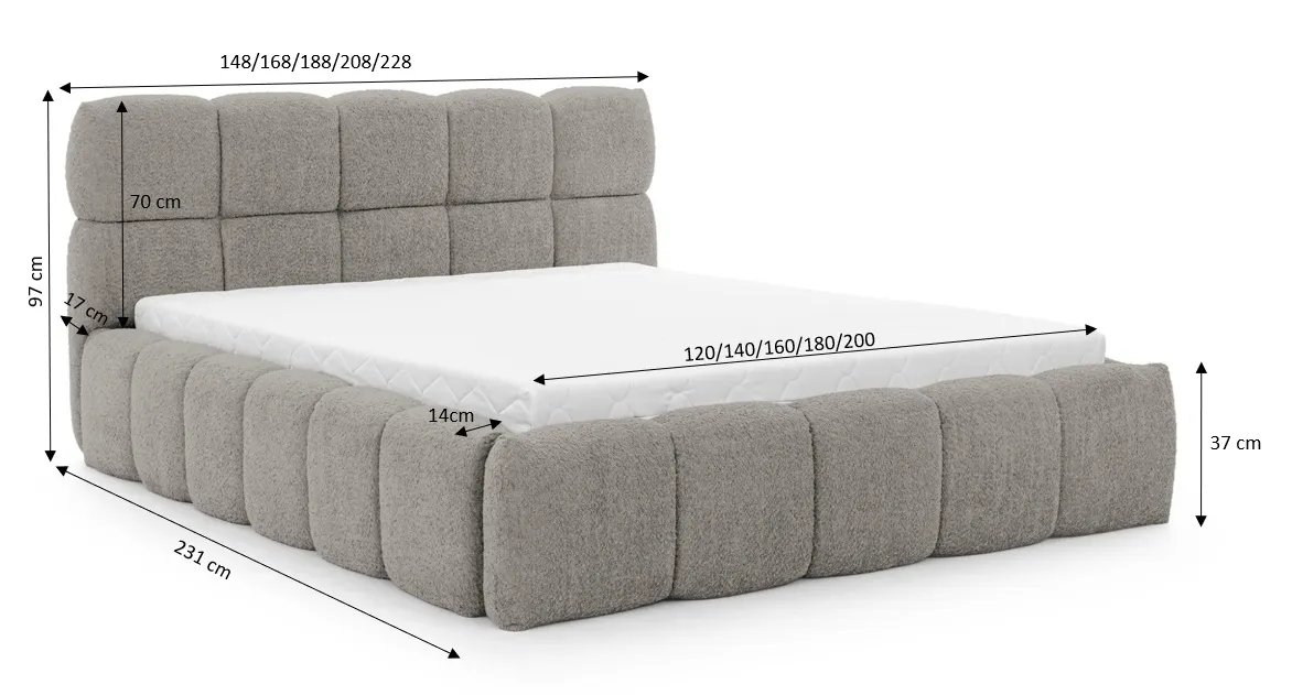 Dotyczy: Szare nowoczesne łóżko boucle 5 rozmiarów - Mellario