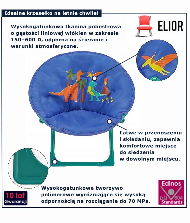 Krzesełko ogrodowe dziecięce Flao marki Edinos Premium to więcej niż zwykły mebel – to gwarancja radości Twojego dziecka i wygoda dla Ciebie za jedyne 118 zł. Dzięki niemu maluch zyska własne miejsce do odpoczynku, a Ty – pewność, że jest bezpieczny i zadowolony. Nie zwlekaj – spraw swojemu dziecku prezent, który ubarwi letnie dni!  Ciesz się wspólnymi chwilami na świeżym powietrzu!