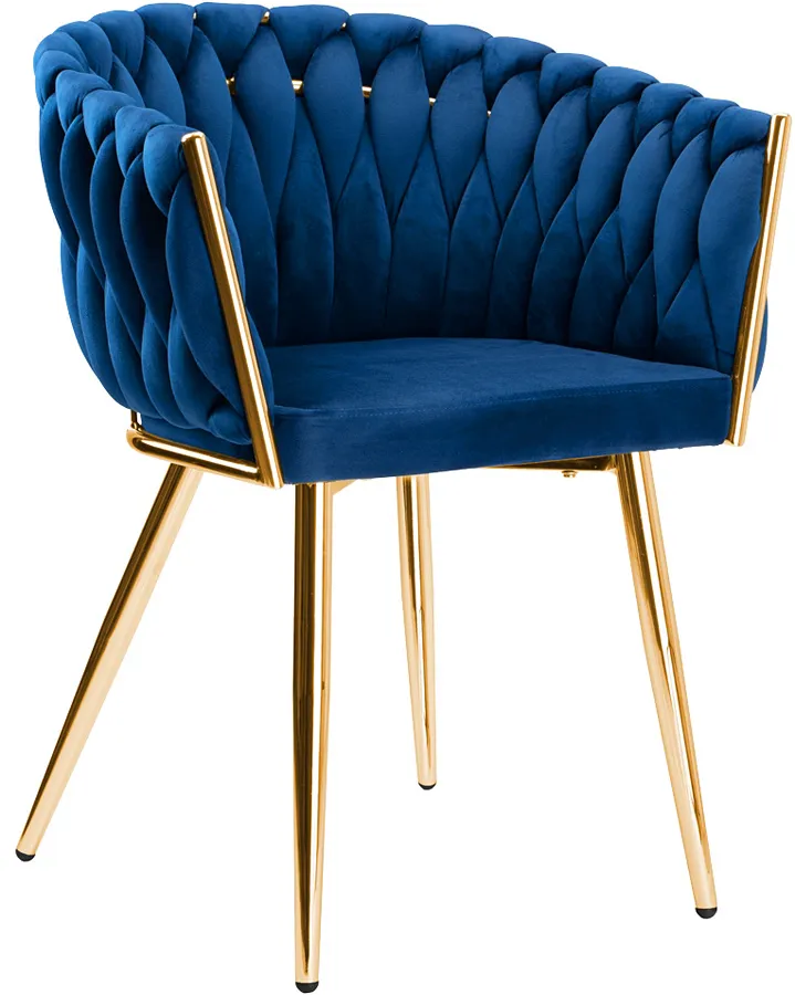 Niebieskie welurowe krzesło plecione - Tisse 4X