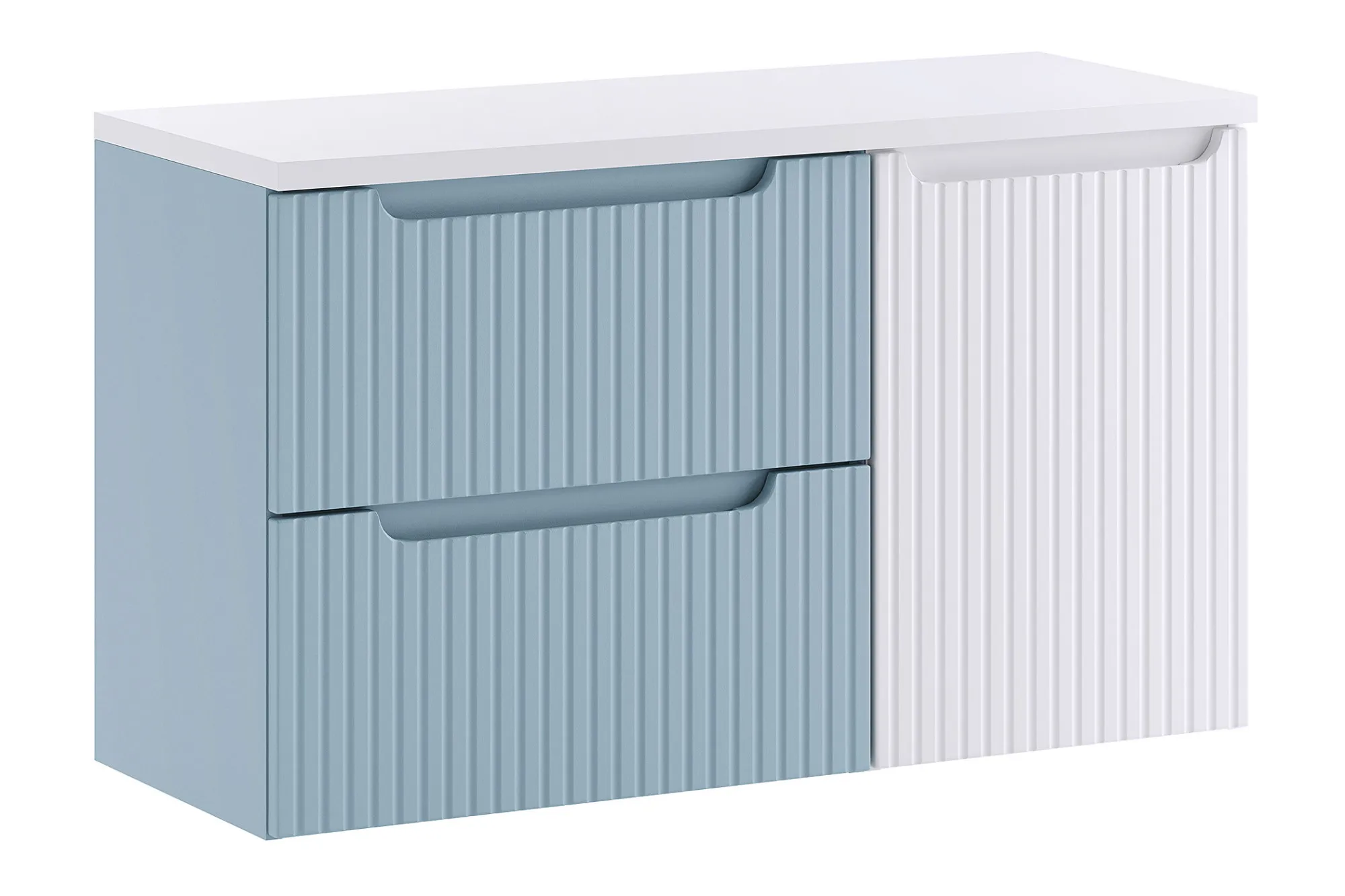 Niebiesko-biała szafka łazienkowa z koszem na pranie - Arvessi 9X