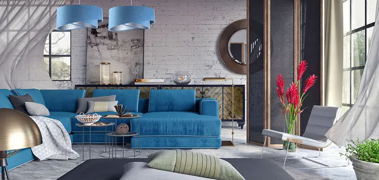 Dotyczy: Niebiesko-biała welurowa lampa wisząca - EX996-Gardi