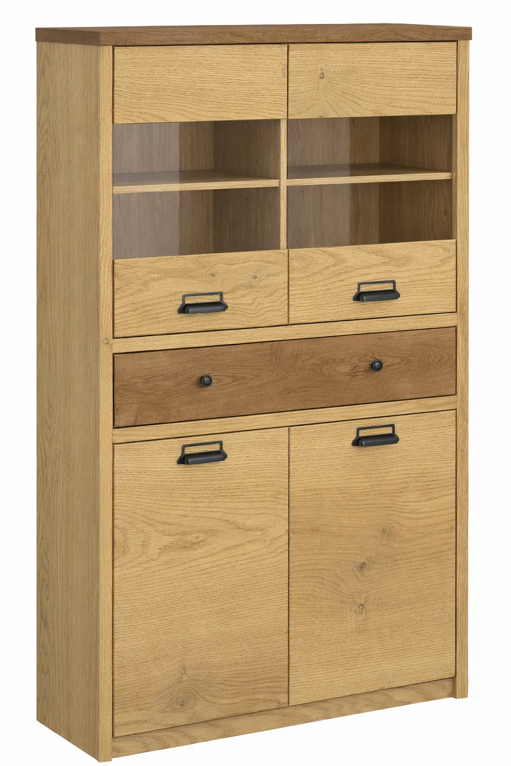 Niska witryna do salonu loft dąb cremona + dąb lefkas - Sevisso 19X