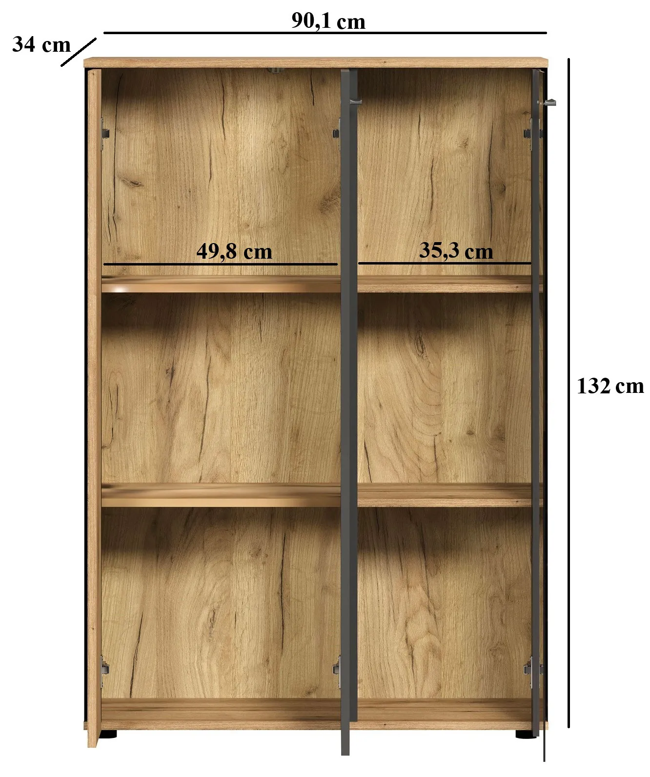 • Szerokość: 90 cm, wysokość: 132 cm, głębokość: 34 cm
