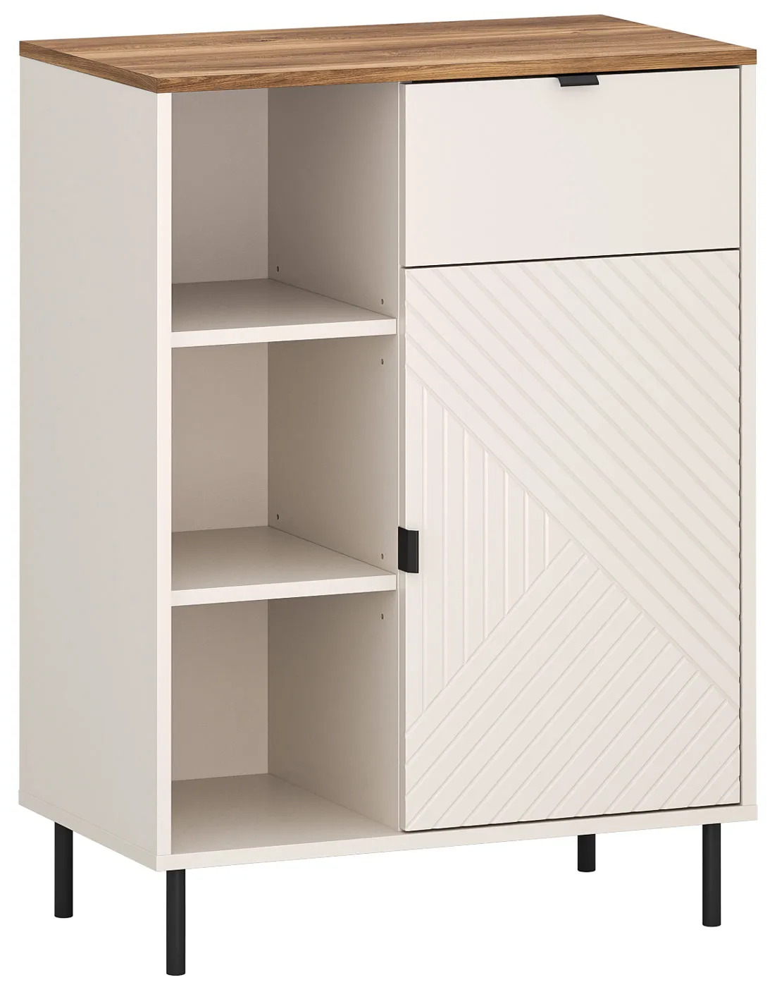 Niski regał otwarty z szafką i szufladą kaszmir + dąb castello - Milox 17X