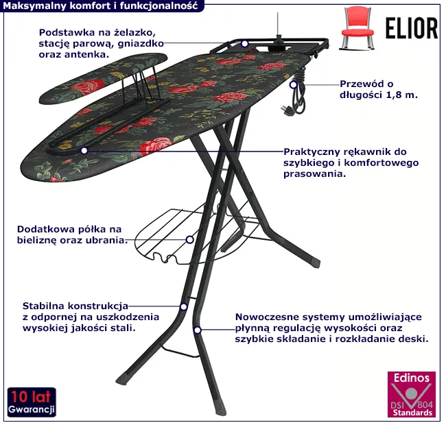 Jeśli wymagasz od deski do prasowania masy udogodnień i komfortu użytkowania, to nasz produkt jest idealnym wyborem. Przekonaj się, że z deską Rosso marki Elior prasowanie może być przyjemne i wygodne. Zamów ją już dzisiaj w atrakcyjnej cenie 398 zł!