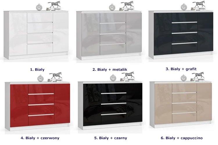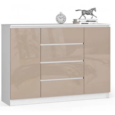 Dotyczy: Nowoczesna komoda w połysku do sypialni biała + czarny - Liv 4X 140 cm