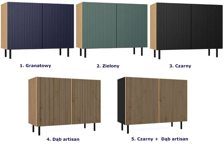 Dotyczy: Granatowa lamelowa komoda na nóżkach - Frea 4X