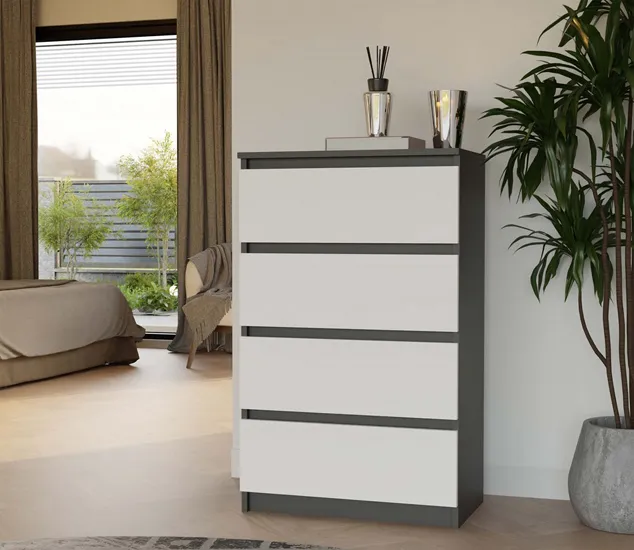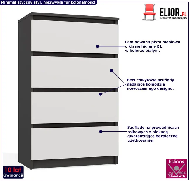 Dotyczy: Biała komoda skandynawska z 4 szufladami - Sulli