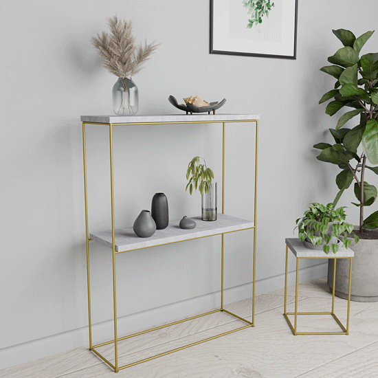 Dotyczy: Klasyczna konsola do przedpokoju dąb sonoma + złoty - Blox 5X