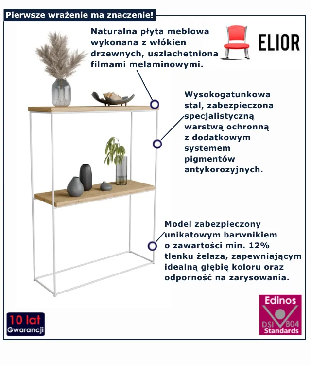 Wyobraź sobie przedpokój, w którym już przy wejściu czeka na Ciebie porządek i styl. Kilka dekoracyjnych dodatków na górnej półce, koszyk na klucze lub świeca – a wszystko na tle subtelnej, eleganckiej konsoli, która nie dominuje, ale dopełnia wnętrze. Dzięki przemyślanej konstrukcji sprawdzi się nawet tam, gdzie liczy się każdy centymetr. Nie czekaj, aż bałagan znów zdominuje Twoje wnętrze – wybierz Blox 3X marki Edinos Premium i zyskaj nowy wymiar funkcjonalności za jedyne 278 zł. Zobacz, jak łatwo może być pięknie i praktycznie!