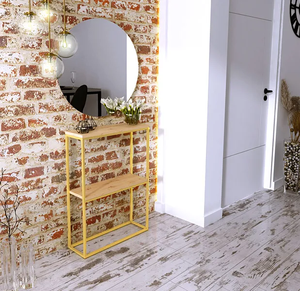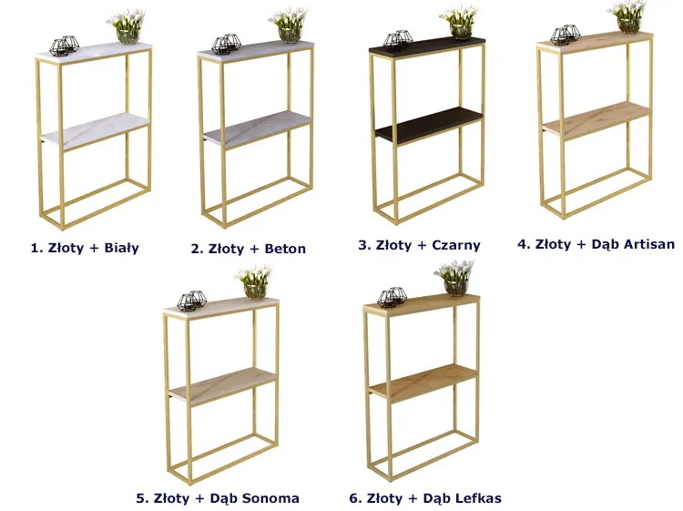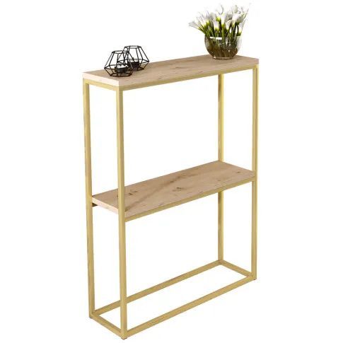 Dotyczy: Wąska konsola z metalowym stelażem złoty + dąb lancelot - Carello 3X