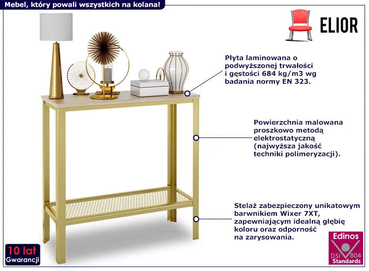 Dotyczy: Nowoczesna konsola z półką złoty + biały połysk - Erid 3X