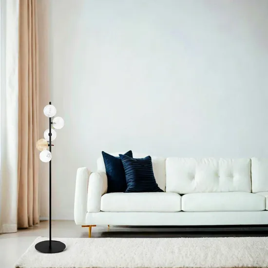 Jeśli chcesz stworzyć klimat, który będzie jednocześnie nowoczesny, ciepły i pełen stylu, to właśnie znalazłeś odpowiednie oświetlenie. Wyjątkowy design, który mówi sam za siebie. Lampa J006-Frolaz to pięć kulistych kloszy w dwóch różnych kolorach – zapewnia ciekawy efekt wizualny. Zastanawiasz się, jak mogłaby wyglądać Twój salon z tą lampą? Wyobraź sobie przytulne wieczory, gdzie światło miękko otula przestrzeń, a Ty możesz skupić się na rozmowie i chwili relaksu.