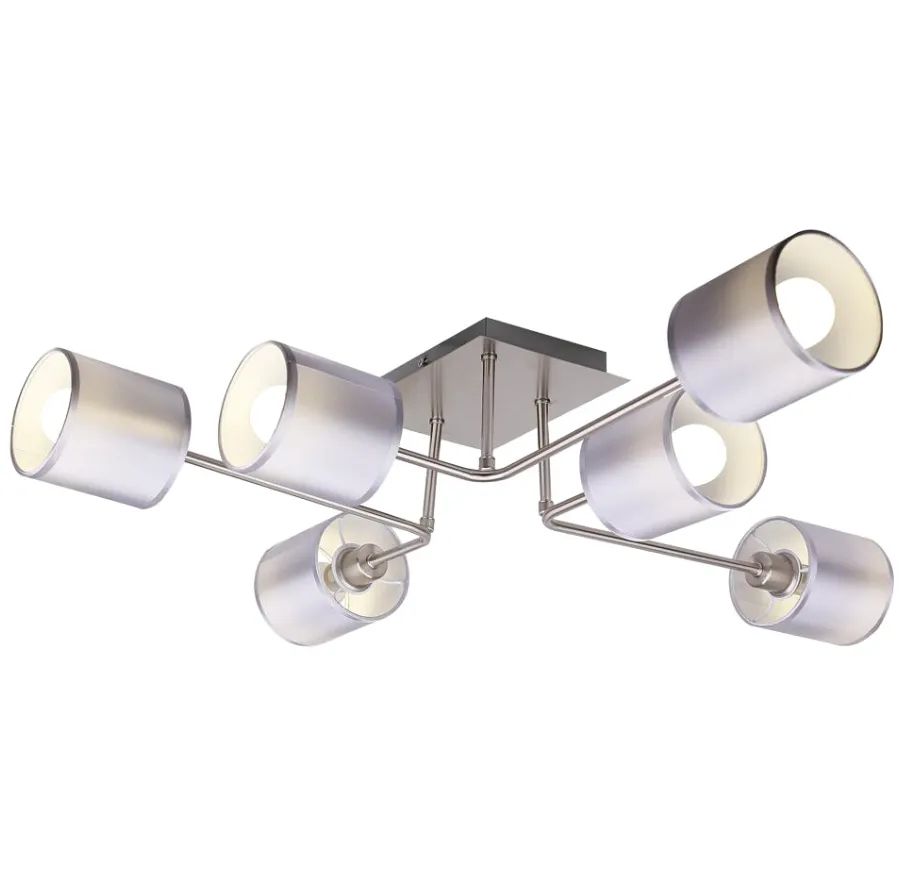 Głównym elementem wyróżniającym tę lampę są jej walcowe abażury, wykonane z tkaniny, którą dodatkowo usztywnia PVC. Dzięki temu abażury zachowują swoją geometryczną formę, a jednocześnie rozpraszają światło w miękki i równomierny sposób. Kolorystyka abażurów to eleganckie odcienie szaro-srebrne, które w połączeniu z satynowym wykończeniem tworzą niezwykle harmonijną paletę kolorów. Ten wyjątkowy zestaw czyni lampę K251-Fifrox doskonałą dekoracją do nowoczesnych wnętrz. Metalowe ramiona lampy, zakończone są abażurami w modnym szarym kolorze. To połączenie nadaje lampie elegancji i nowoczesności, co sprawia, że doskonale wpisuje się w różnorodne style aranżacyjne. Lampa K251-Fifrox to nie tylko źródło światła, ale także doskonała dekoracja, która rozświetli każde pomieszczenie. Jej chromowa podstawa łączy się z satynowymi kloszami w harmonijny sposób, przyciągając uwagę i nadając wnętrzu niepowtarzalnego charakteru.