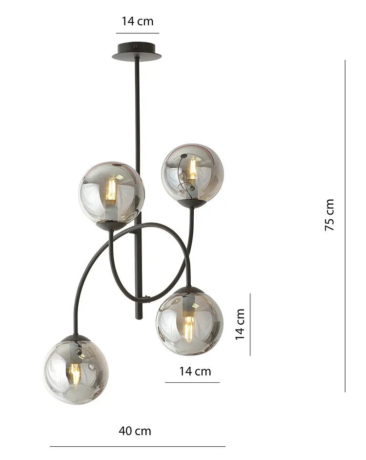 Ta wyjątkowa lampa jest wykonana z najwyższej jakości stali, malowanej proszkowo, co gwarantuje jej trwałość i odporność na uszkodzenia. Połyskujące szklane klosze dodają lampie lekkości i elegancji, a jej uniwersalny design sprawia, że idealnie odnajduje się w różnych aranżacjach wnętrz - od nowoczesnych salonów, przez jadalnie, aż po kuchnie w stylu loftowym. Subtelne kolory kinkietów lampy D116-Hurgen sprawiają, że staje się ona nie tylko źródłem światła, ale również dekoracyjnym elementem każdego pomieszczenia.
