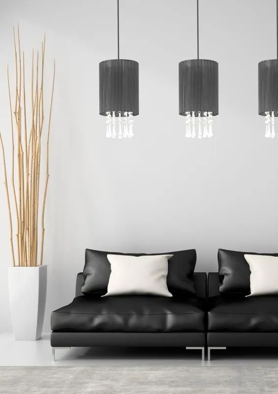 E420-Larma to elegancka lampa utrzymana w nowoczesnym stylu glamour. Jej znakiem szczególnym jest finezyjny abażur, spod którego zwisają akrylowe kryształki. Lampa została wykonana z materiałów wysokiej jakości, dzięki czemu prezentuje się wspaniale zachowując przy tym walory niezawodności. Szczególnie polecana do wnętrz nowoczesnych i glamour.