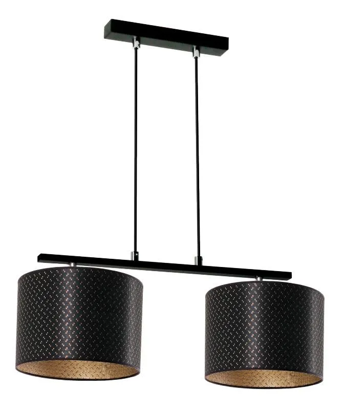 E864-Viva to ekskluzywna oprawa oświetleniowa, która urzeka swoją elegancją i szykiem. Świetne połączenie kolorystyczne materiałowych abażurów - czarny ze złotą nitką na zewnątrz i złoty wewnątrz sprawia, że lampa prezentuje się niezwykle wyjątkowo. Oprawa nie tylko posłuży jako źródło światła, ale także jako ozdoba każdego wnętrza, w którym będzie się znajdowała. Przyciągnie każdy wzrok i nada pomieszczeniu szlachetnego i eleganckiego charakteru. Jest to idealna propozycja dla tych osób, które doceniają niepowtarzalne aranżacje oświetleniowe. Lampa wisząca doskonale będzie współgrała z nowoczesnym, eleganckim stylem wnętrz. W piękny sposób oświetli salon, jadalnię, sypialnię, garderobę, przedpokój czy też biuro. Produkt został wykonany z materiałów najwyższej jakości, dzięki czemu będzie można cieszyć się jego wyglądem i funkcjonalnością przez wiele lat.