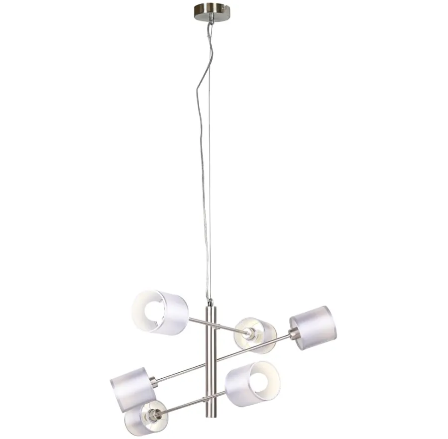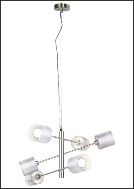 Głównym elementem wyróżniającym tę lampę są jej walcowe abażury, wykonane z tkaniny, którą dodatkowo usztywnia PVC. Dzięki temu abażury zachowują swoją geometryczną formę, a jednocześnie rozpraszają światło w miękki i równomierny sposób. Kolorystyka abażurów to eleganckie odcienie szaro-srebrne, które w połączeniu z satynowym wykończeniem tworzą niezwykle harmonijną paletę kolorów. Ten wyjątkowy zestaw czyni lampę K252-Fifrox doskonałą dekoracją do nowoczesnych wnętrz. Metalowe ramiona lampy, zakończone są abażurami w modnym szarym kolorze. To połączenie nadaje lampie elegancji i nowoczesności, co sprawia, że doskonale wpisuje się w różnorodne style aranżacyjne. Lampa K252-Fifrox to nie tylko źródło światła, ale także doskonała dekoracja, która rozświetli każde pomieszczenie. Jej chromowa podstawa łączy się z satynowymi kloszami w harmonijny sposób, przyciągając uwagę i nadając wnętrzu niepowtarzalnego charakteru.
