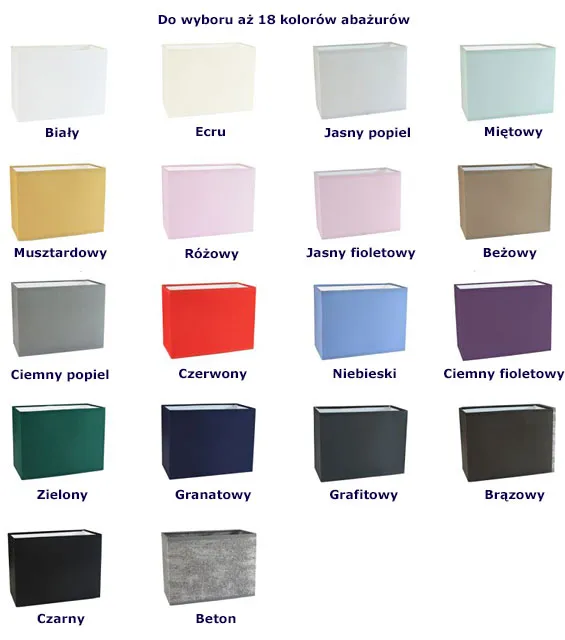 Kolor: stelaż - biały, abażur - do wyboru 18 kolorów (zaznacz wybrany kolor abażuru dodając produkt do koszyka)