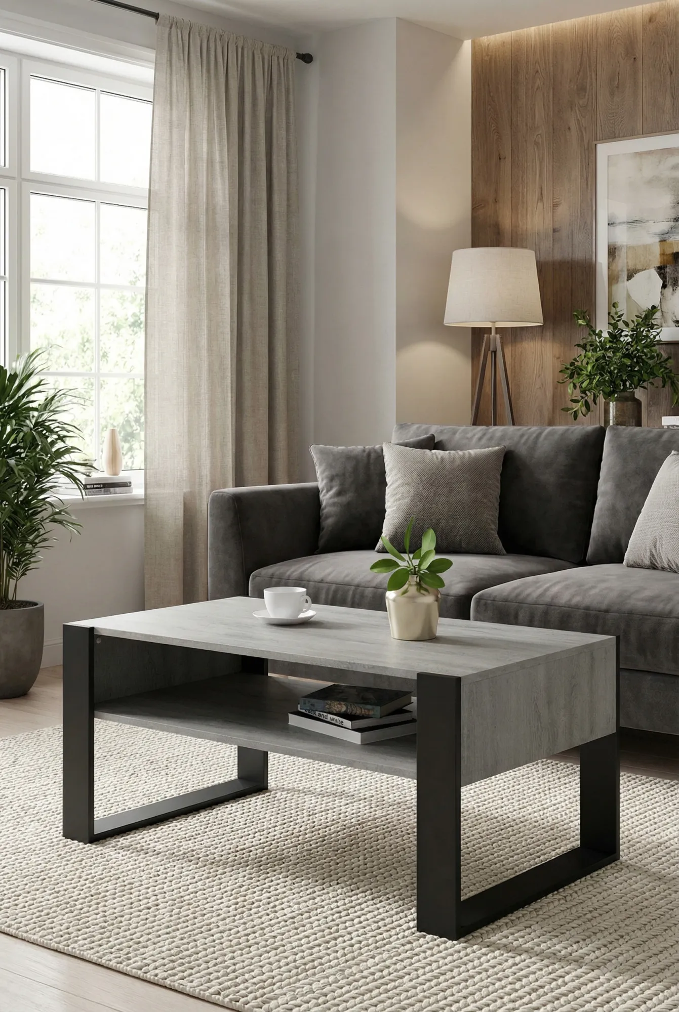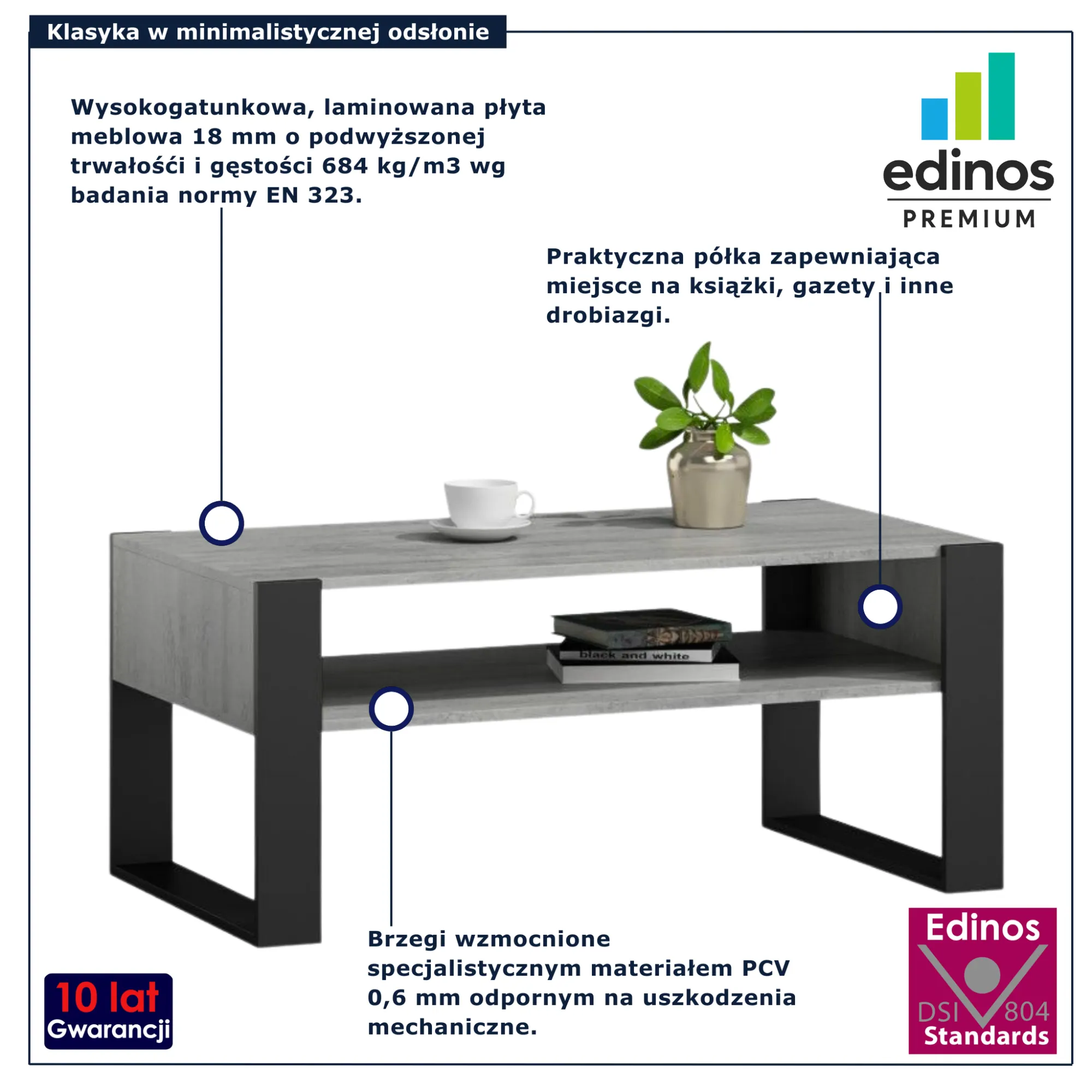 Dotyczy: Ława z półką do salonu dąb artisan + czarny - Bracio 3X