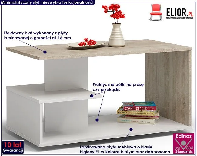 Dotyczy: Ława kawowa w kolorze dąb sonoma z półką - Lezo