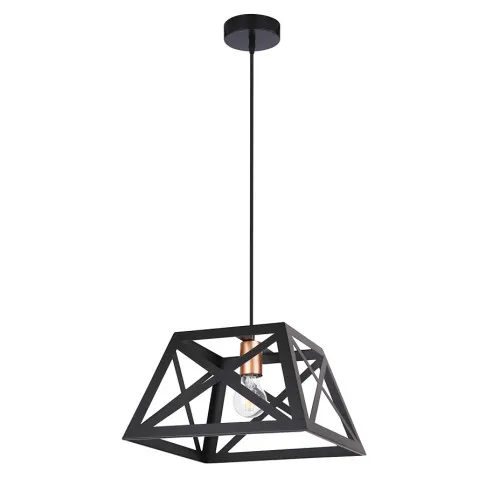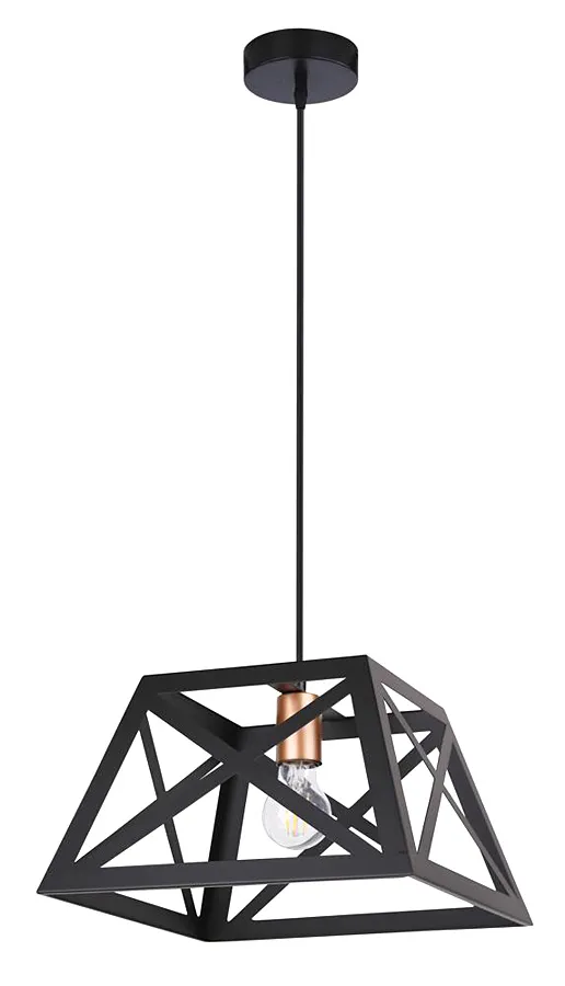 Lampa wisząca T026-Perry z czarnego metalu zapewnia doskonałe oświetlenie Twojego pomieszczenia. Jej klosz ma kształt rombu z przeplatanych między sobą metalowych elementów, co daje niepowtarzalny efekt świetlny. Dodatkowo, jest wykonana z najwyższej jakości materiałów, dzięki czemu jest trwała i odporna na uszkodzenia. Możesz mieć pewność, że posłuży Ci przez wiele lat. Lampa T026-Perry w stylu loft to również świetne rozwiązanie dla osób, które chcą stworzyć ciekawy kontrast w swoim pomieszczeniu. Dzięki swojemu industrialnemu charakterowi, lampa idealnie komponuje się z ciepłymi drewnianymi meblami, ale równie dobrze wygląda w zestawieniu z nowoczesnymi elementami.