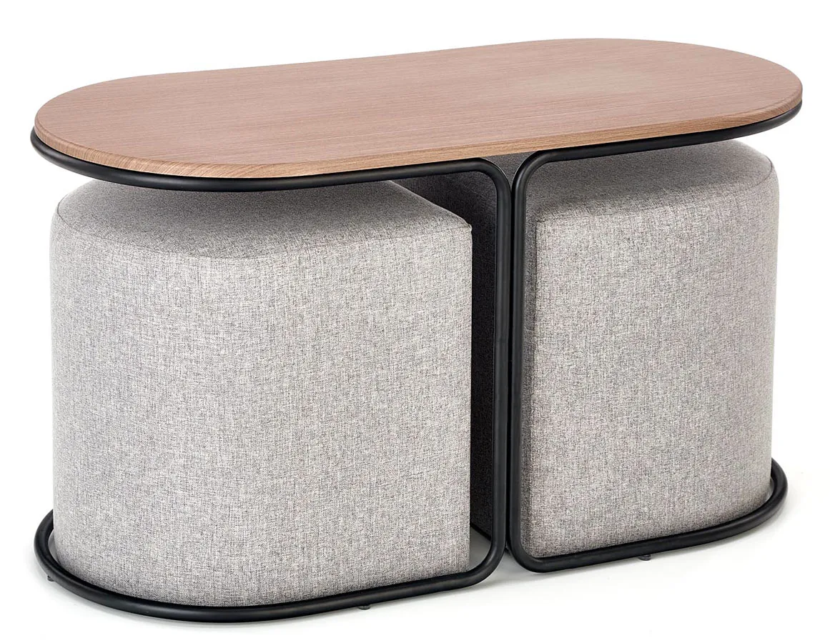 Nowoczesna owalna ława z pufami orzech - Akoja
