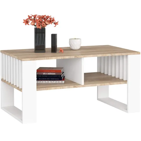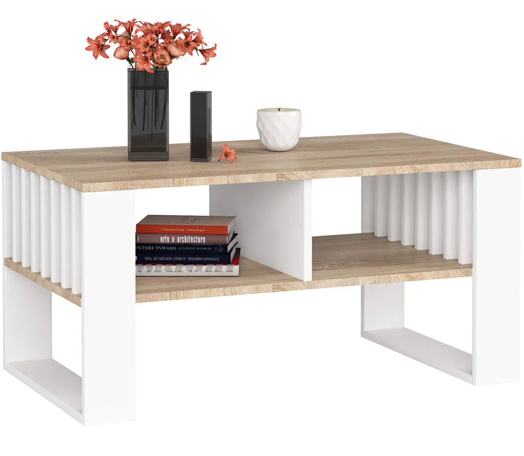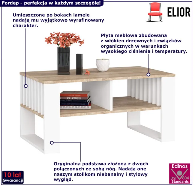 Stolik kawowy z eleganckimi lamelami - doskonałe połączenie stylu i funkcjonalności: