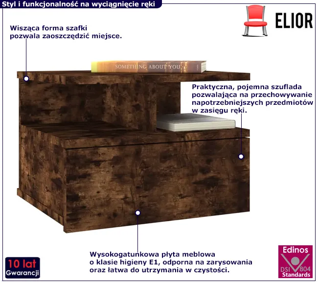 Odkryj szafkę nocną Milleniar marki Edinos Premium, która jest idealnym połączeniem prostoty, funkcjonalności i elegancji. Ta wisząca szafka nocna to nie tylko praktyczny element wyposażenia sypialni, ale również stylowy dodatek, który doda charakteru każdemu wnętrzu.
